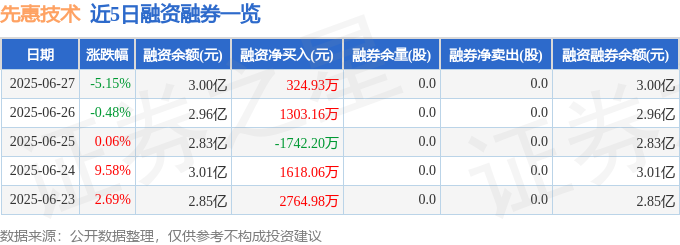 先惠技术融资融券信息显示,融资方面,当日融资买入5402.18万元,融资偿还5077.25万元,融资净买入324.93万元。融券方面,融券卖出0.0股,融券偿还0.0股,融券余量0.0股,融券余额0.0万元。融资融券余额3.0亿元。
