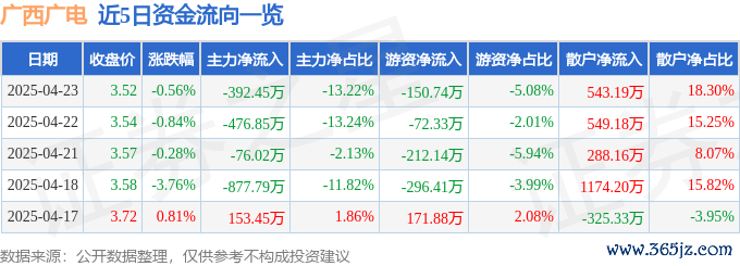4月23日的资金流向数据方面,主力资金净流出392.45万元,占总成交额13.22%,游资资金净流出150.74万元,占总成交额5.08%,散户资金净流入543.19万元,占总成交额18.3%。