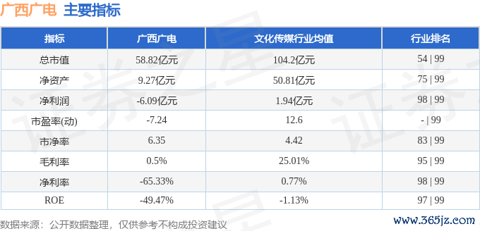 广西广电2024年三季报显示,公司主营收入9.32亿元,同比下降14.59%;归母净利润-6.09亿元,同比下降56.84%;扣非净利润-6.34亿元,同比下降29.25%;其中2024年第三季度,公司单季度主营收入3.3亿元,同比上升10.84%;单季度归母净利润-2.31亿元,同比下降19.37%;单季度扣非净利润-2.4亿元,同比上升0.88%;负债率87.88%,投资收益-1302.38万元,财务费用1.33亿元,毛利率0.5%。广西广电(600936)主营业务:收视业务、节目传输业务、工程业务、数据业务、销售业务等。