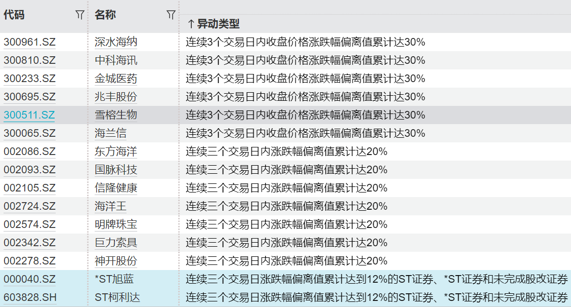 连续异动个股一览连续异动个股一览