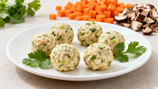 除了牛奶,豆腐也是补钙能手,尤其是北豆腐(每 100 克约含 138 毫克钙),比南豆腐钙含量更高。家常做法里,豆腐蔬菜丸子就很合适: